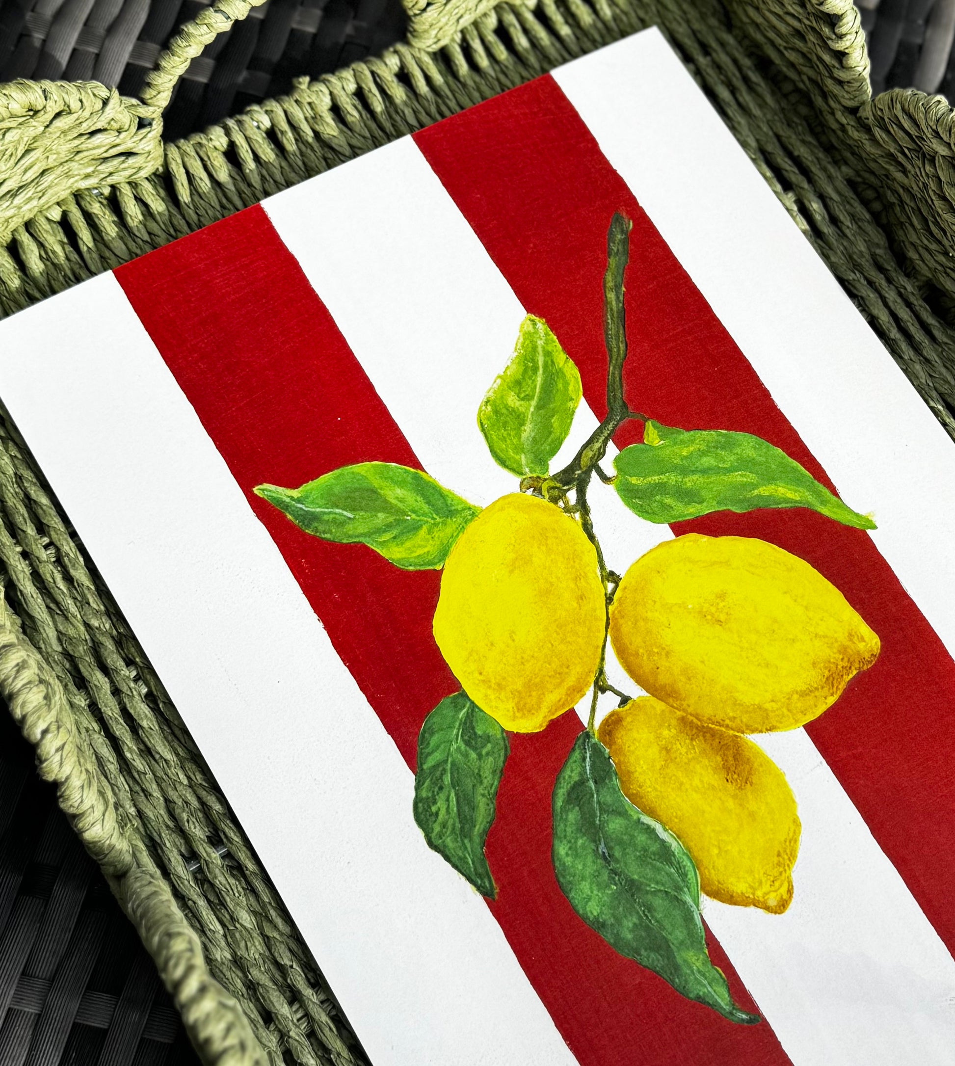A pop of drama and joy from lemons, set on bold red stripes