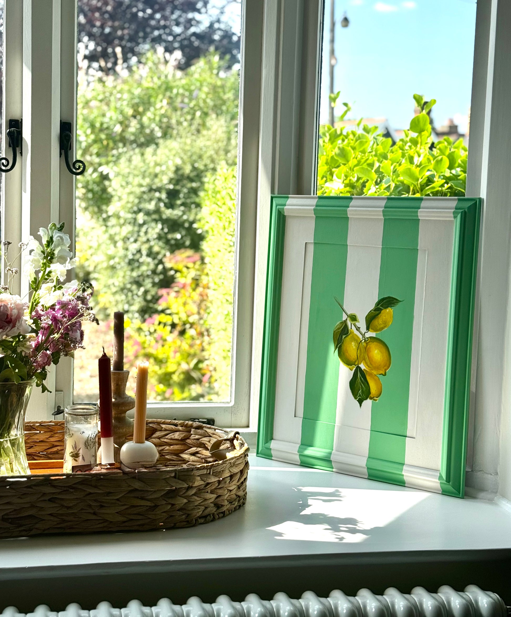 Soft lemons drift across mint-green stripes, bringing a light, airy touch to any space